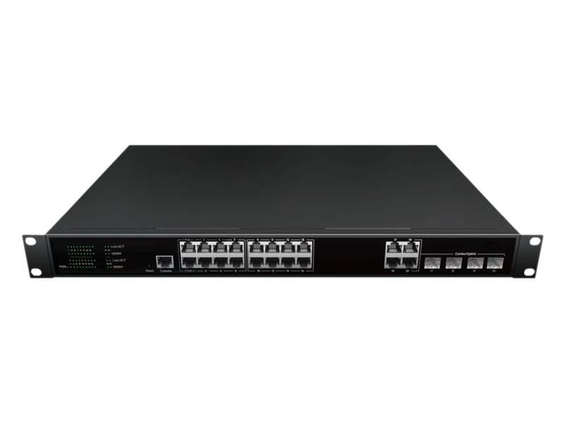 - 16 портов RJ45 10/100/1000 Мбит/ с, 4 комбинированных порта 10/100/1000 Мбит/ с, 1 консольный порт