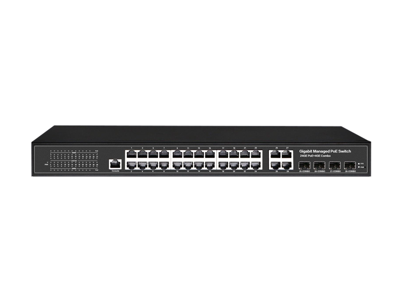 - Порты 24x10/100/1000M PoE+, 4x1G combo