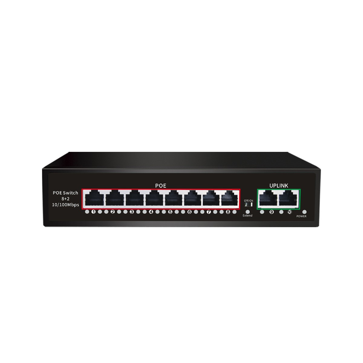 Коммутатор 8*10/100base-T POE RJ45, 2*10/100base-T UP-Link, 250m, 52В/2.3А, ≤120Вт, IEEE802.3AF/AT, 2Gbps, MDI/MDIX, 202*140*45mm, 1.1Kg