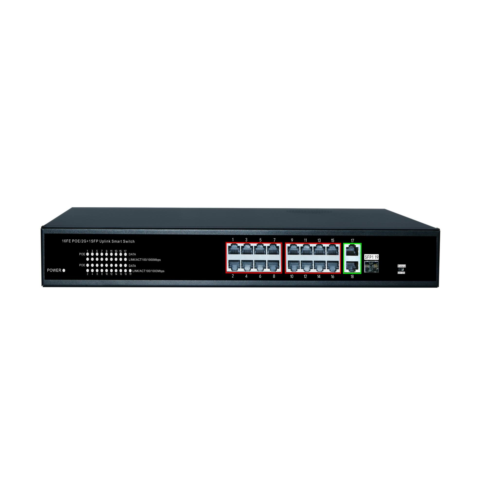 Коммутатор 16*10/100base-T POE RJ45, 2*10/100/1000base-T, 1*SFP