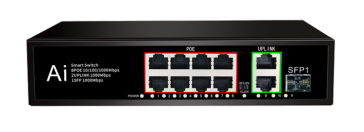 Коммутатор 8*10/100/1000base-T POE RJ45, 2*10/100/1000base-T, 1*SFP