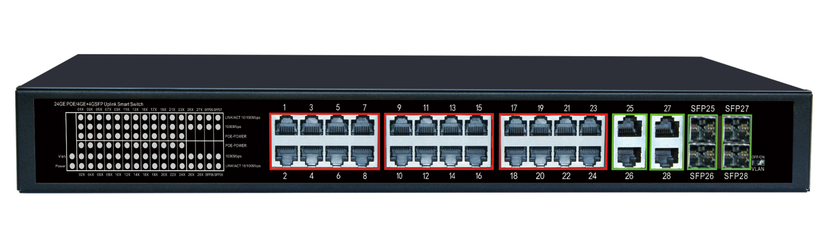 Коммутатор 24*10/100/1000base-T POE RJ45, 4*10/100/1000base-T, 4*SFP